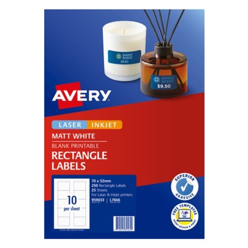 Avery Blank Printable Labels L7666 70 x 52mm Rectangle Matte White 10UP 250 Labels
