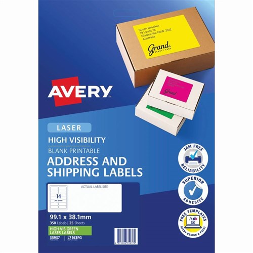 Avery High Visibility Shipping Laser Fluoro Green L7163FG 99.1x38.1mm 14UP 350 Labels