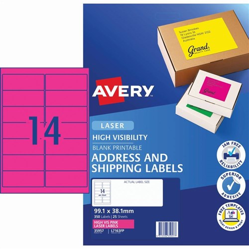 Avery High Visibility Shipping Laser Labels Pink L7163FP 99.1x38.1mm 14UP 350 Labels