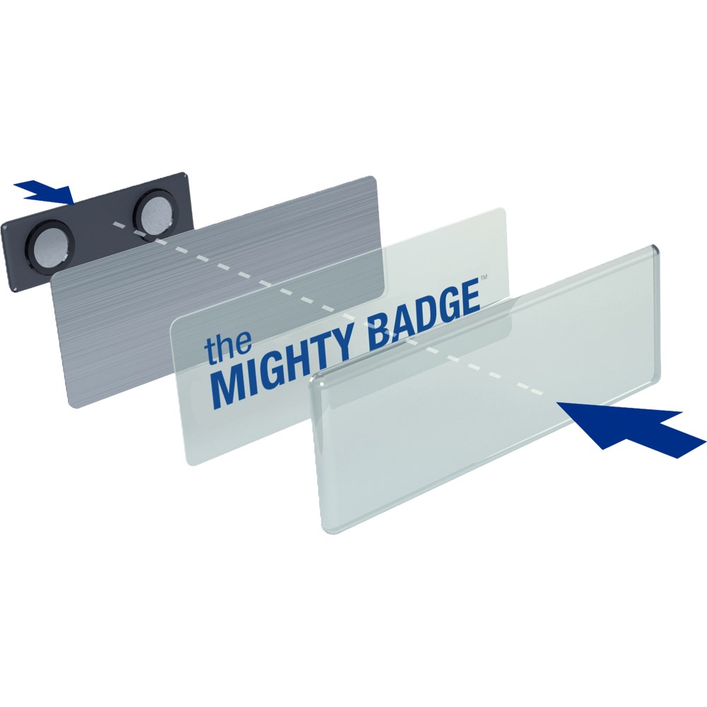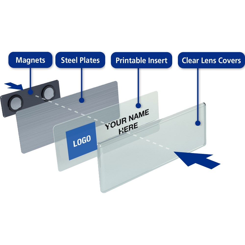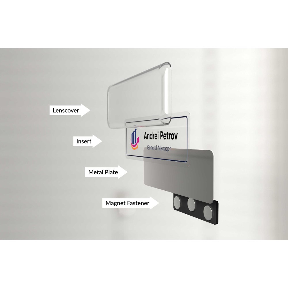 • Name badges can be used and reused for every occasion by simply replacing inserts.