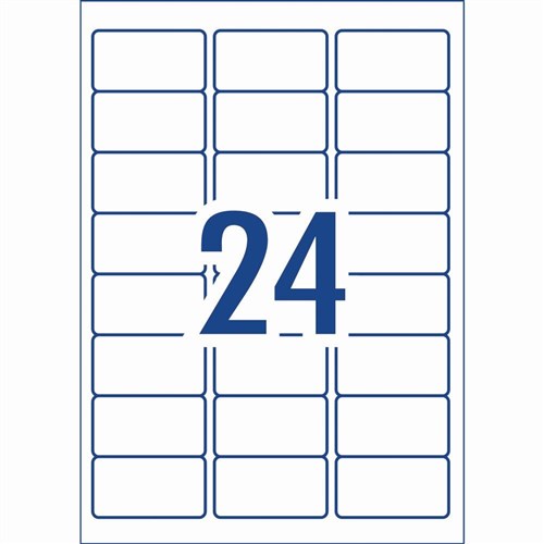 • Size: 64x33.8mm 2400 labels, 100 sheets. 24 labels per sheet (24UP).
