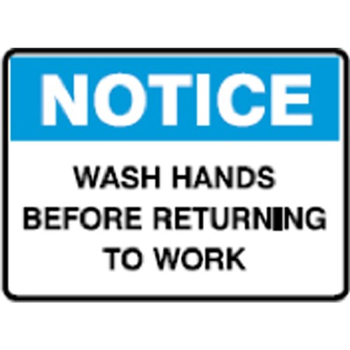 • Wording: Notice Sign Wash Hands Before Returning To Work.