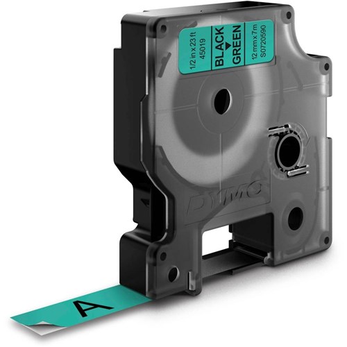 Dymo D1 Label Cassette Tape 12mmx7m Black on Green