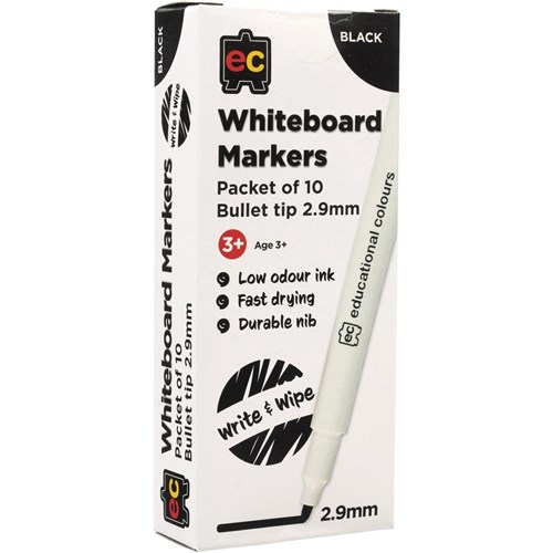 EC Whiteboard Marker Thin Black Pack of 10