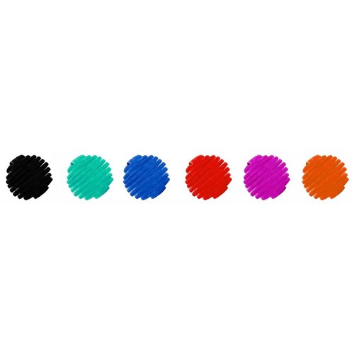 • 6 bright, vibrant colours in Red, Pink, Orange, Green, Blue and Black