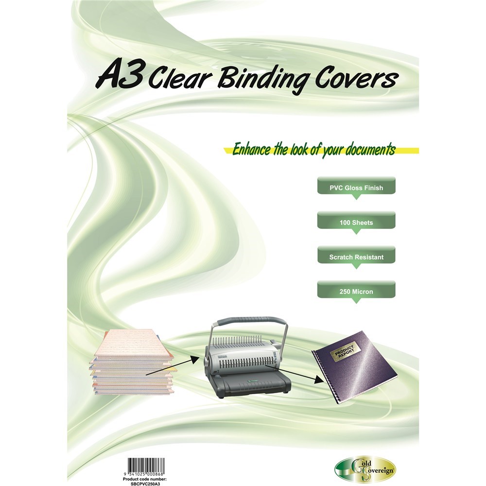 Gold Sovereign Heavy Duty Binding Covers 250 micron A3 Pack of 100 Clear