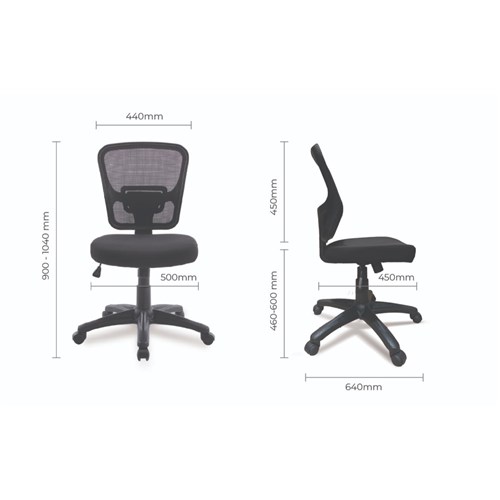 • Seat Dimensions: 500W x 450D x 460-600mmH. Back Height: 450mm. Back Width: 440mm.