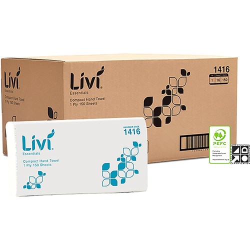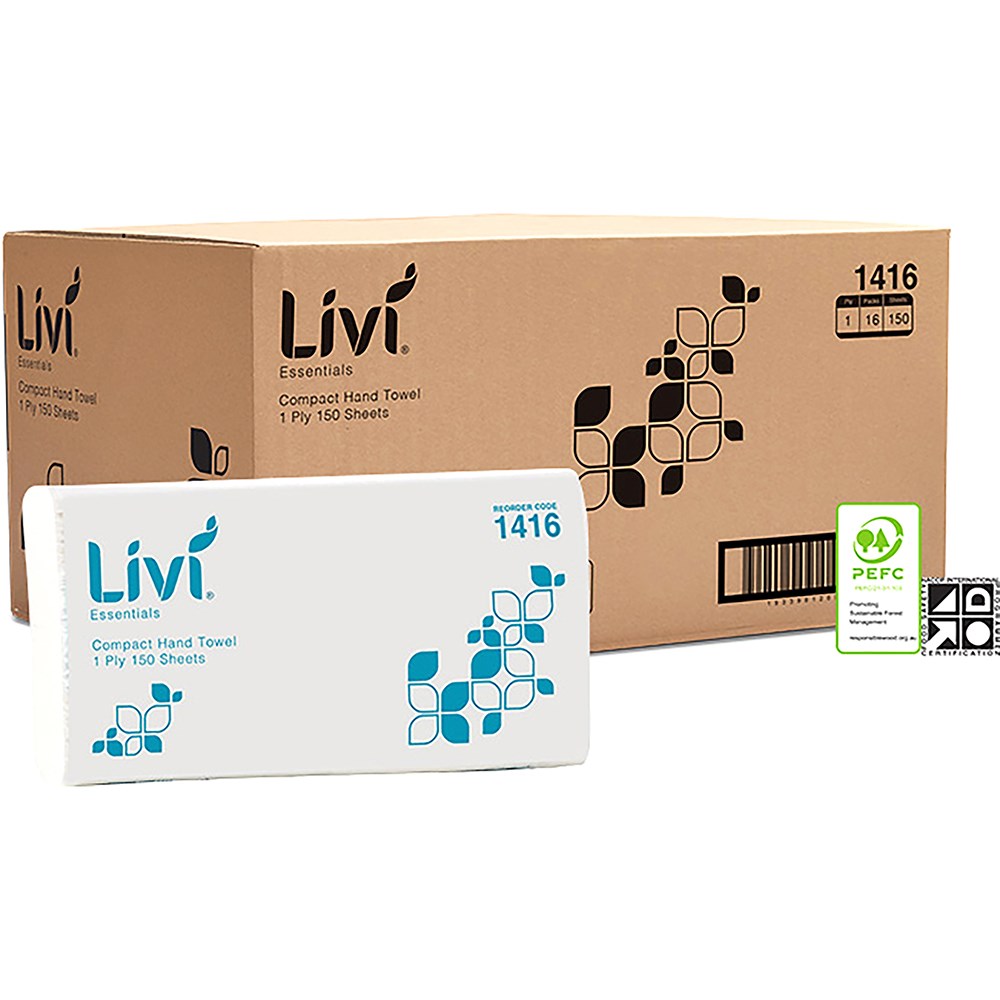 Livi Essentials Hand Towel Compact 1 Ply 150 Sheet Box Of 16