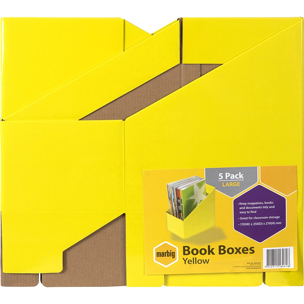 Marbig Book Boxes Large 170W x 250D x 270mmH Yellow Pack Of 5