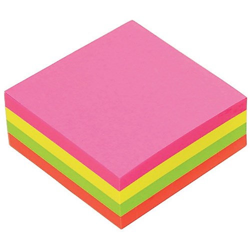 Marbig Repositionable Cube Notes 75 x 75mm Brilliant Neon Assorted 80 Sheet Pack Of 4