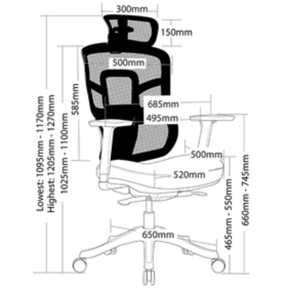 • 650mm black nylon 5 star base.
