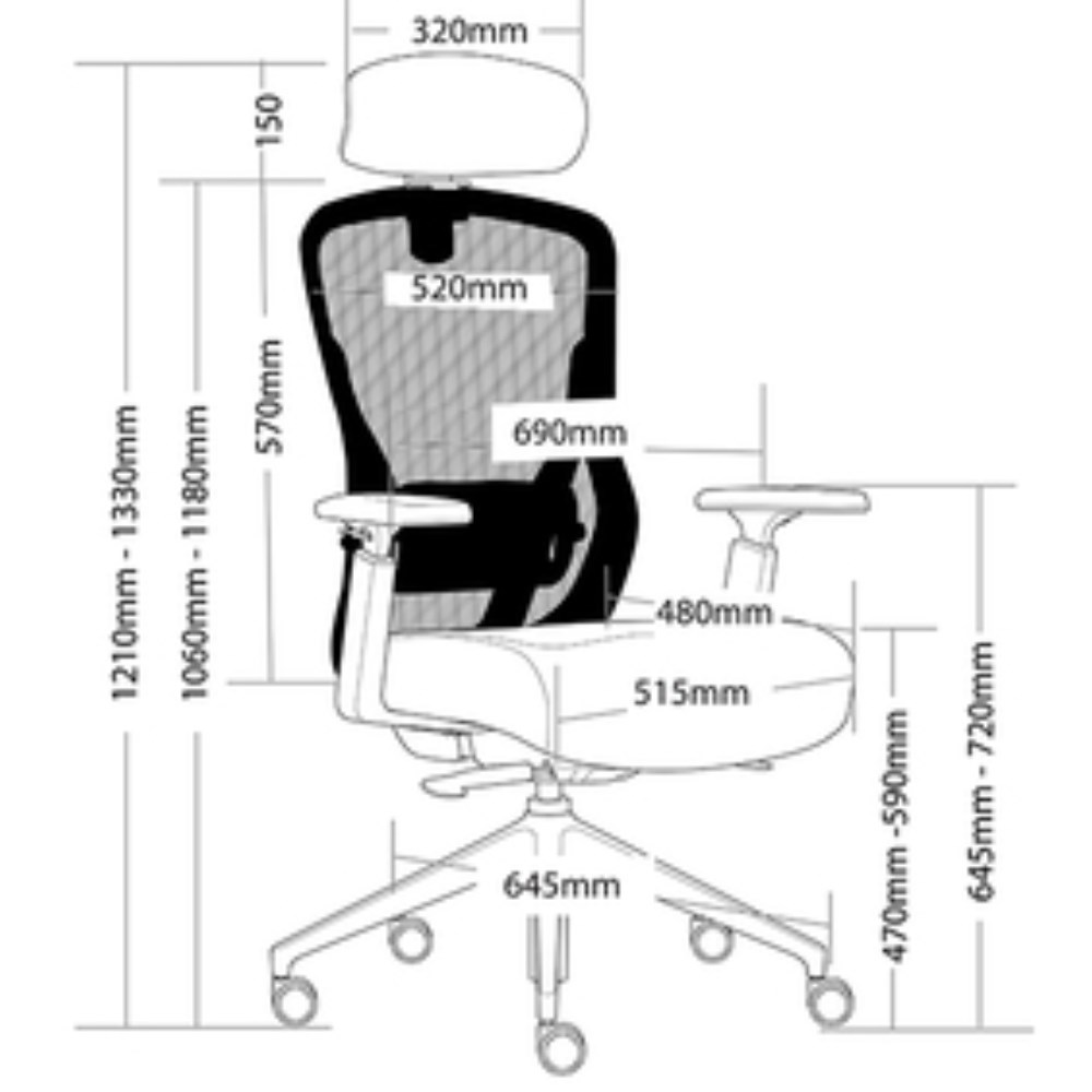 • 645mm black nylon 5 star base.