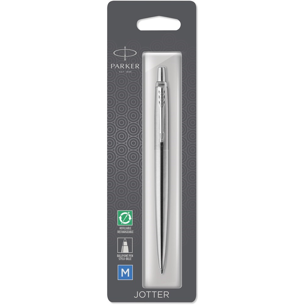 Parker Jotter Ballpoint Pen Chrome Trim Stainless Steel Blue Refill