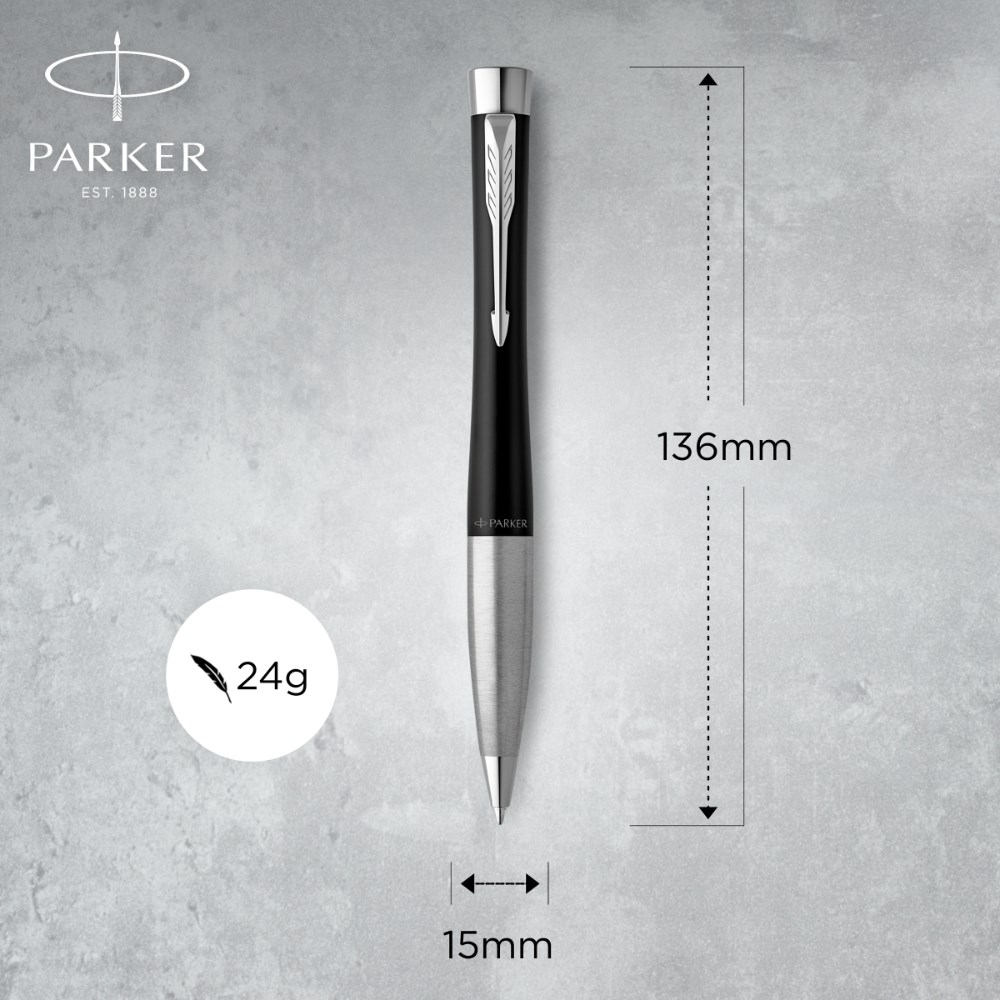 Parker Urban Twist Ballpoint Pen Muted Black Chrome Trim Blue Refill