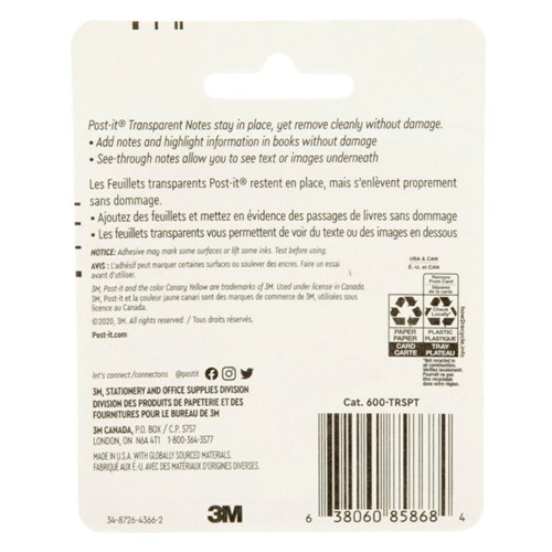 • Transparent notes for use in books, crafts and other projects where you need to make notes on items and see underneath easily.