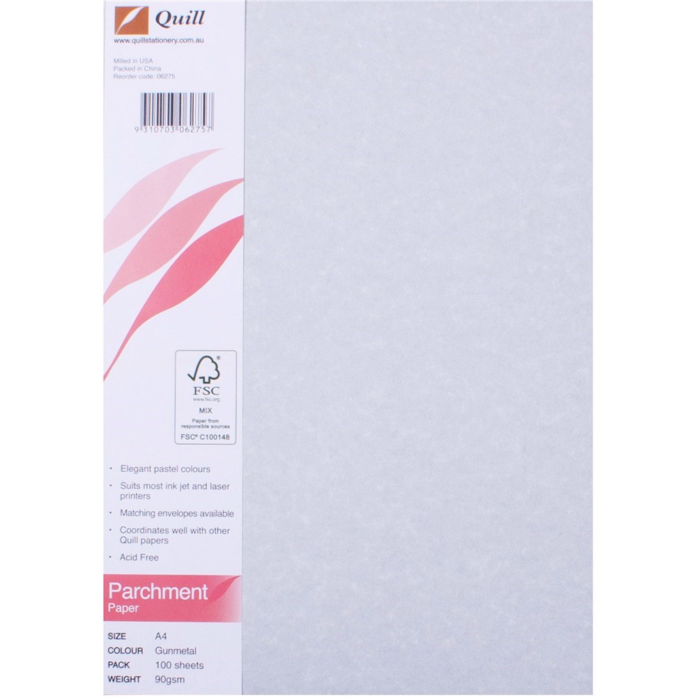 Quill Parchment Paper A4 90gsm Gunmetal Pack of 100