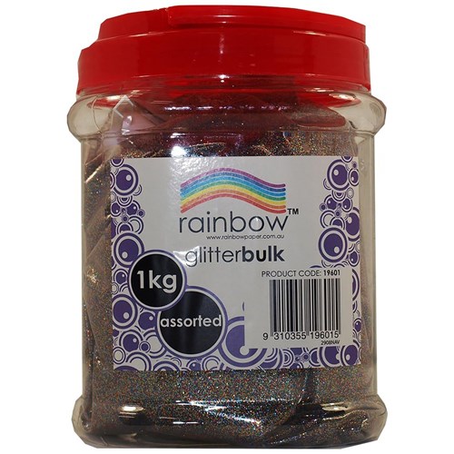 Art & Craft - Rainbow Glitter Bulk Jar Assorted 1kg - Office Choice Wangaratta