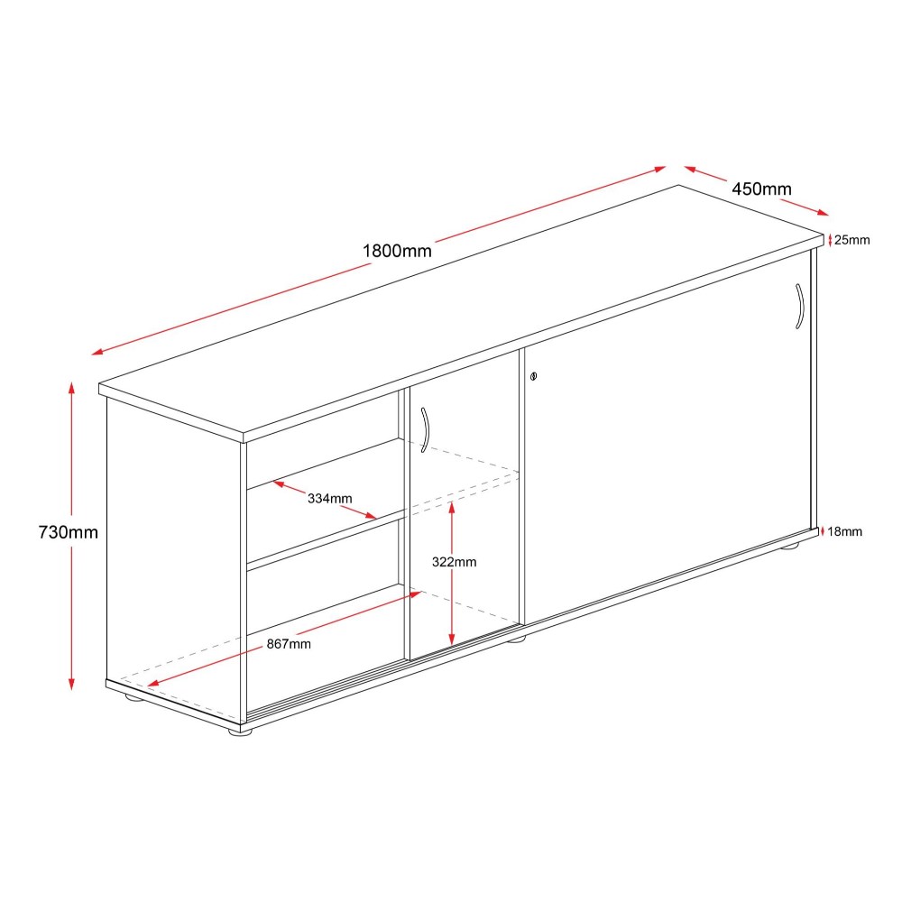 Rapidline Credenza Sliding Doors 1800W x 450D x 730mmH Cherry And Ironstone