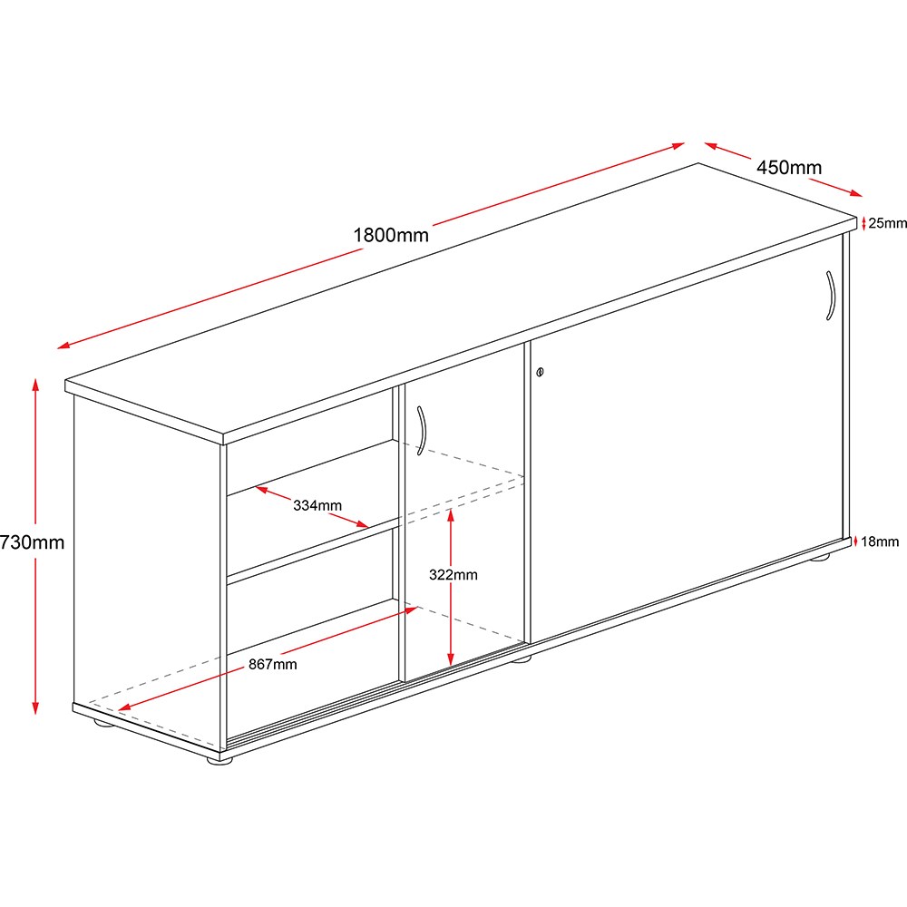 Rapidline Credenza Sliding Doors 1800W x 450D x 730mmH Oak And Ironstone
