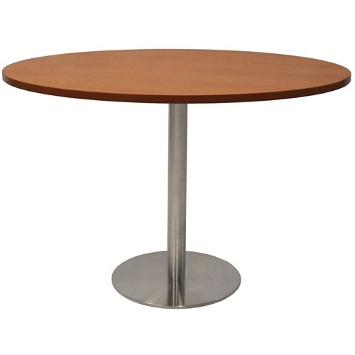 Rapidline Estillo Disc Base Round Table 1200D x 755mmH Cherry Top Silver Base