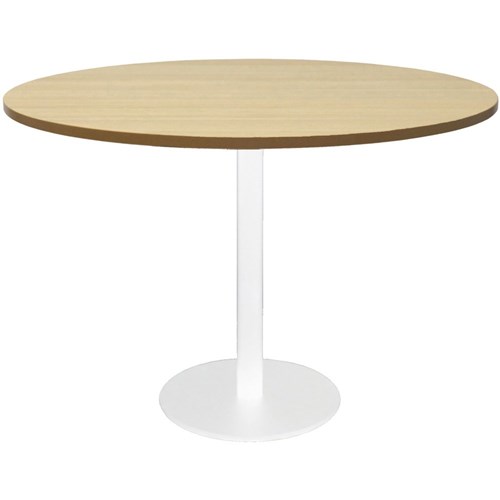 Rapidline Estillo Disc Base Round Table 1200D x 755mmH Oak Top White Base