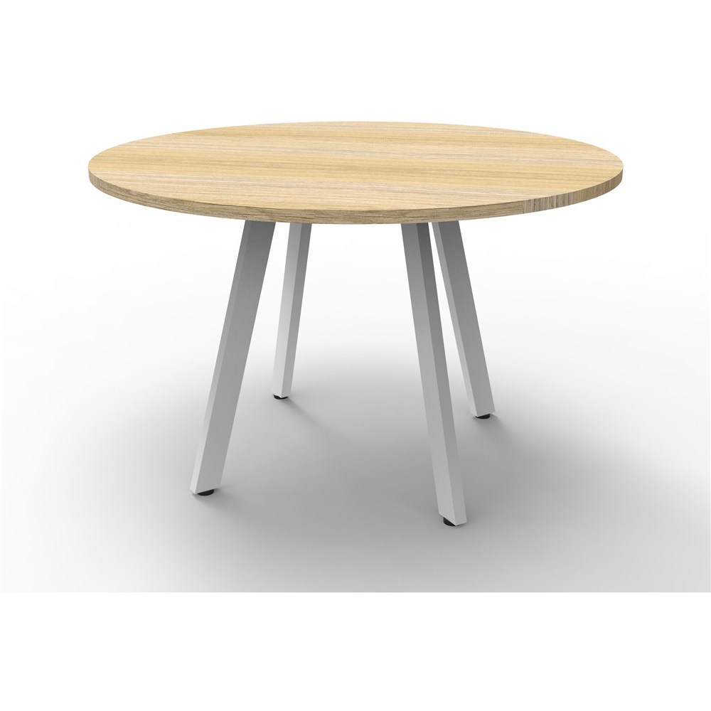 Rapidline Eternity Meeting Round Table 1200D x 730mmH Oak Top White Base