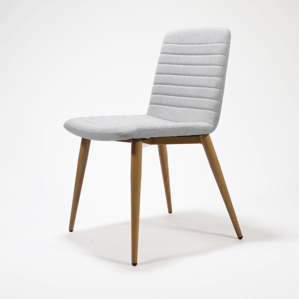 • Fabric upholstery with ribbed stitching detail.