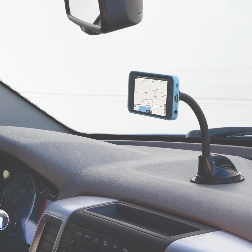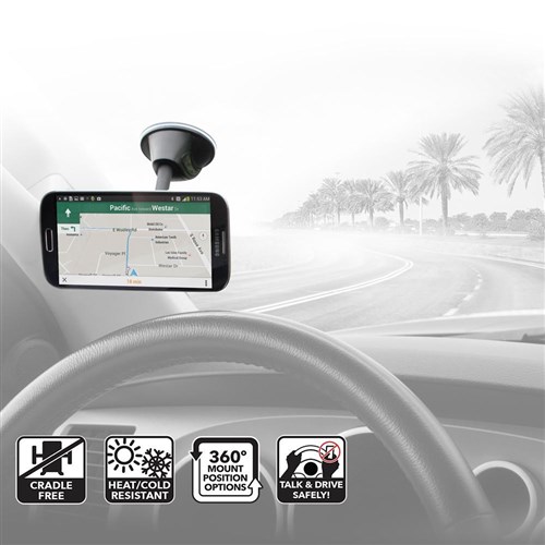 • Suction cup attaches securely to dashboard or window surfaces.