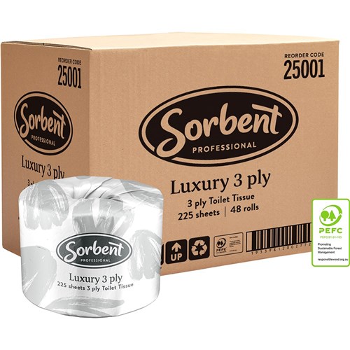 Sorbent Professional Luxury Toilet Tissue Rolls 3 Ply 225 Sheets Carton Of 48