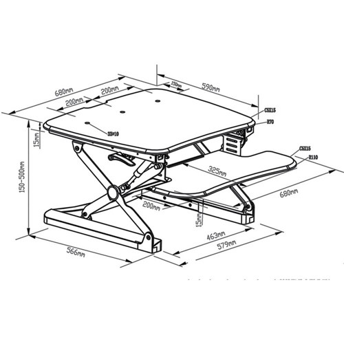 Sylex Arise Deskalator Sit-Stand Riser 680W x 590D x 150-500mmH Black