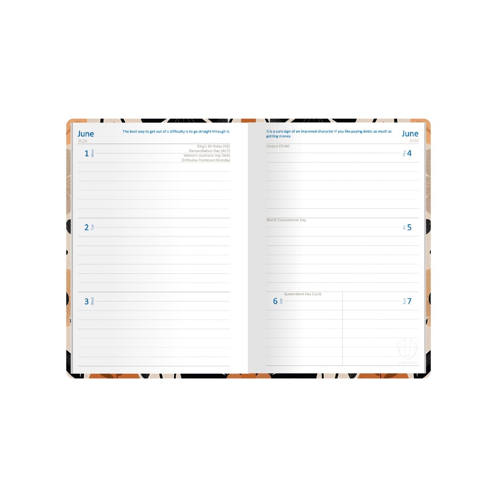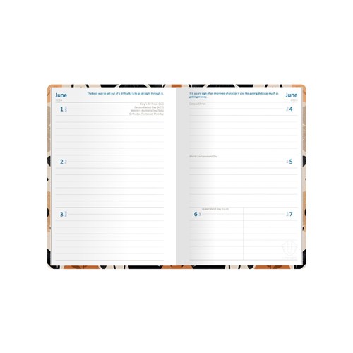 • The week to view layout provides a convenient overview of your week, while the section sewn binding ensures your diary will stay in perfect condition.