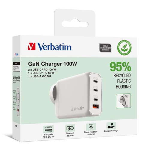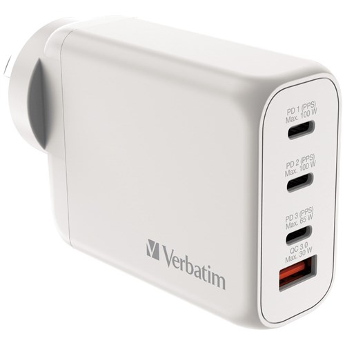 Verbatim GaN 4 Port USB A/C Charger 100W White
