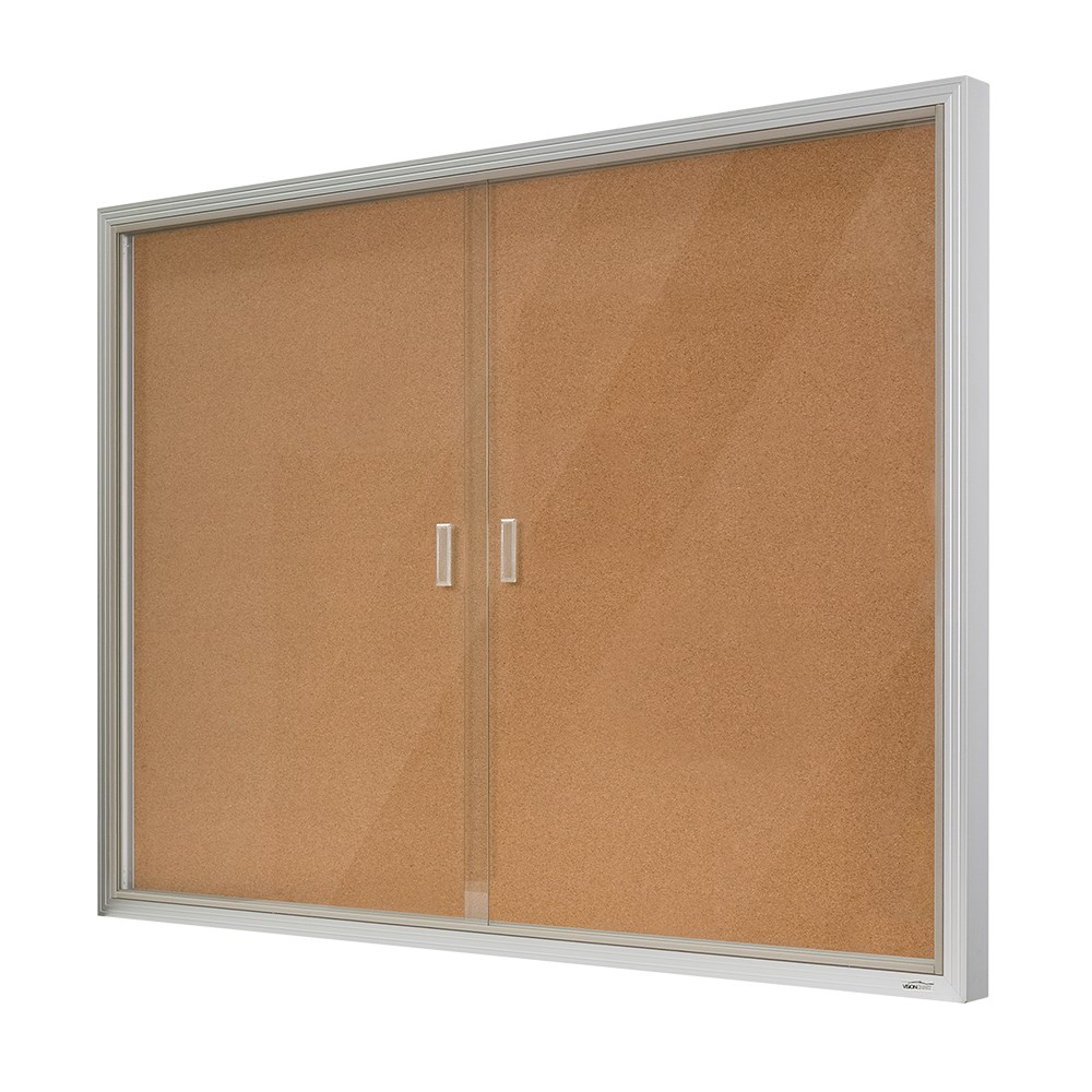 Visionchart Be Noticed Sliding 2 Door Notice Case 1525W x 48D x 915mmH Black/Cork